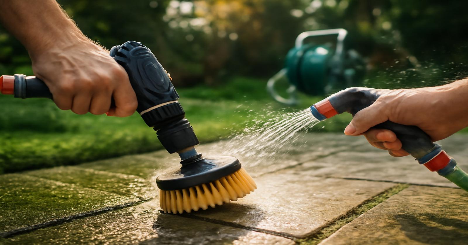 Je nach Außentemperatur und Produkt kann diese Einwirkzeit variieren. An einem warmen, windstillen Tag kannst du die Lösung auch noch einmal leicht nachgießen, wenn sie zu schnell trocknet. Das Ziel: Sie soll so lange feucht bleiben, bis du mit der Bürste kommst. Wie ein stilles, chemisches Vorspiel zum eigentlichen Schrubben.