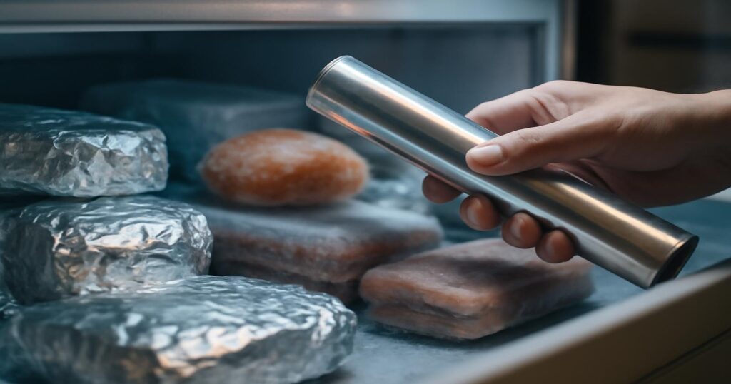 Die Alufolie raschelt leise, als du die Schublade im Gefrierschrank aufziehst. Zwischen gefrorenen Beeren, Brot und alten Eisresten blitzt ein