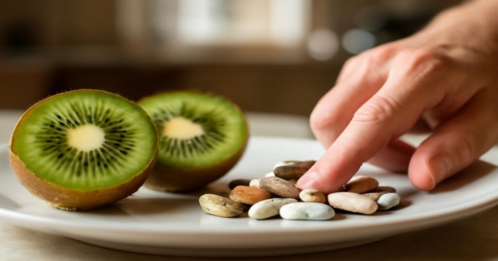 Der erste Biss in eine Kiwi ist immer ein kleiner Schock. Erst dieses säuerliche Prickeln auf der Zungenspitze, dann die