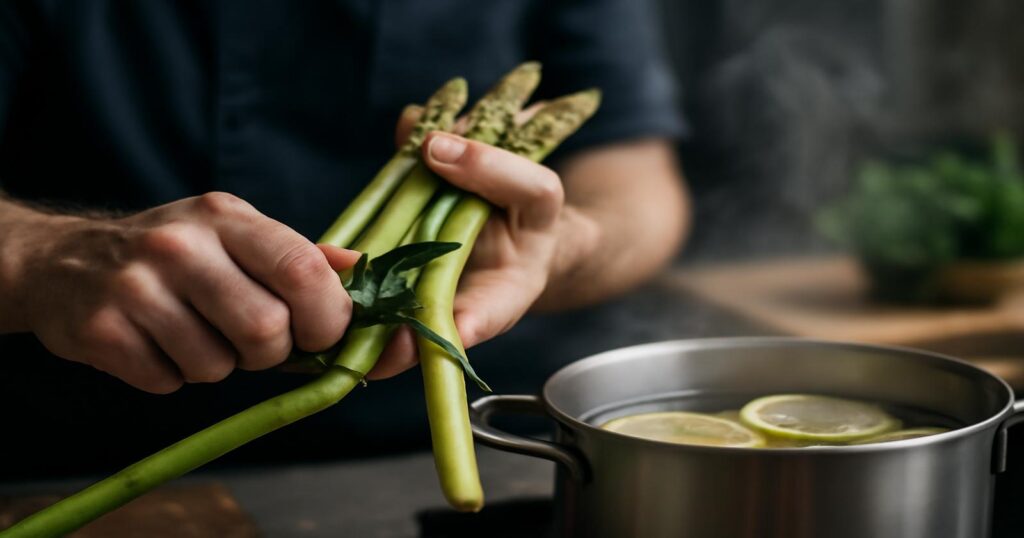 Der Dampf steigt auf wie ein zarter Schleier. In der Küche riecht es nach Frühling – nach frischem Spargel, feuchter